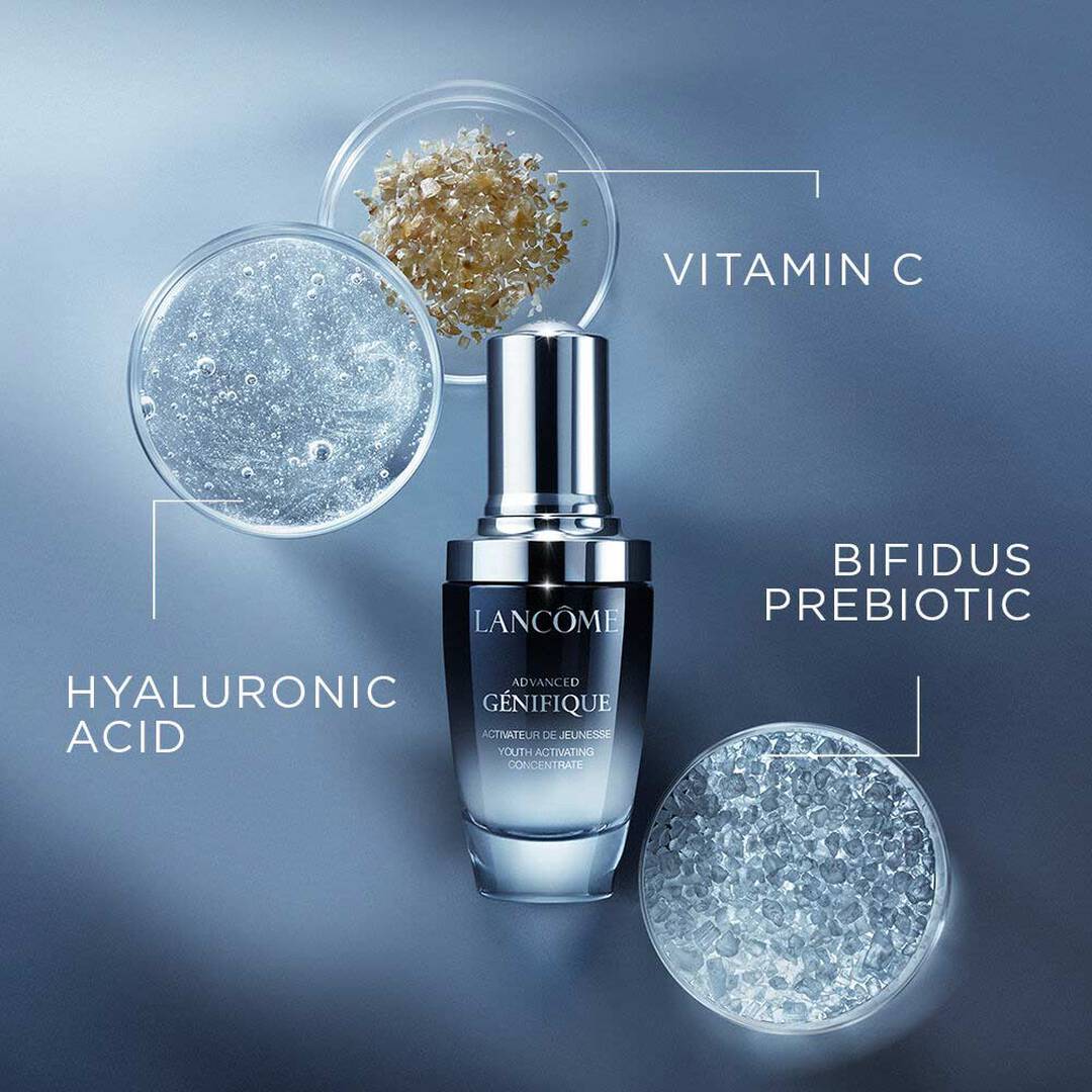 Born from 20 years of research in microbiome science, Advanced Genifique patented serum contains 6 billion pre- & probiotic fractions in every bottle*.With the serum, your skin is better equiped to face external stressors [pollution, cold, dry weather, air conditionning, and humidity] that can lead to faster aging.Proven on 7 clinical skin paramaters:- Radiance 52%*